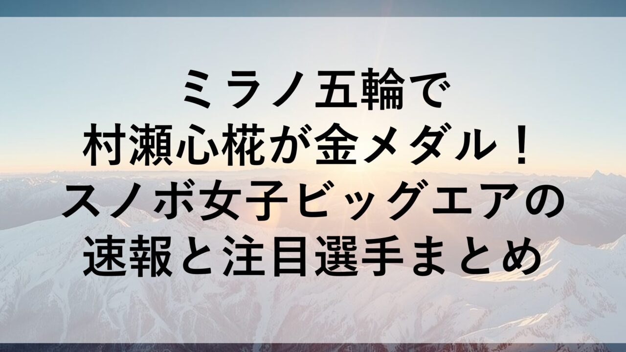 ミラノ五輪で村瀬心椛が金メダル!スノボ女子ビッグエアの速報と注目選手まとめ